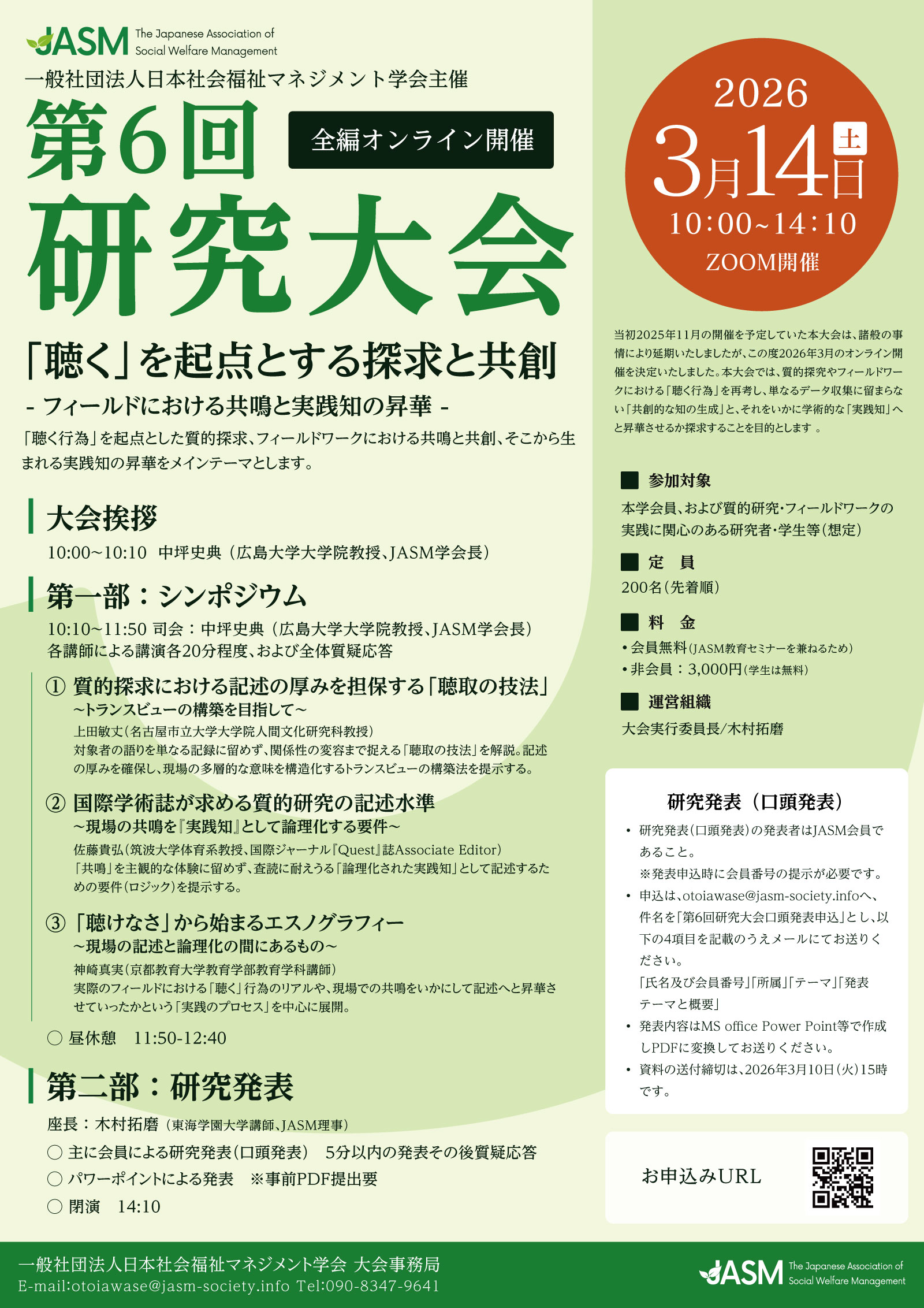 - 開会の挨拶: 中坪史典 (広島大学大学院教授、JASM学会長)